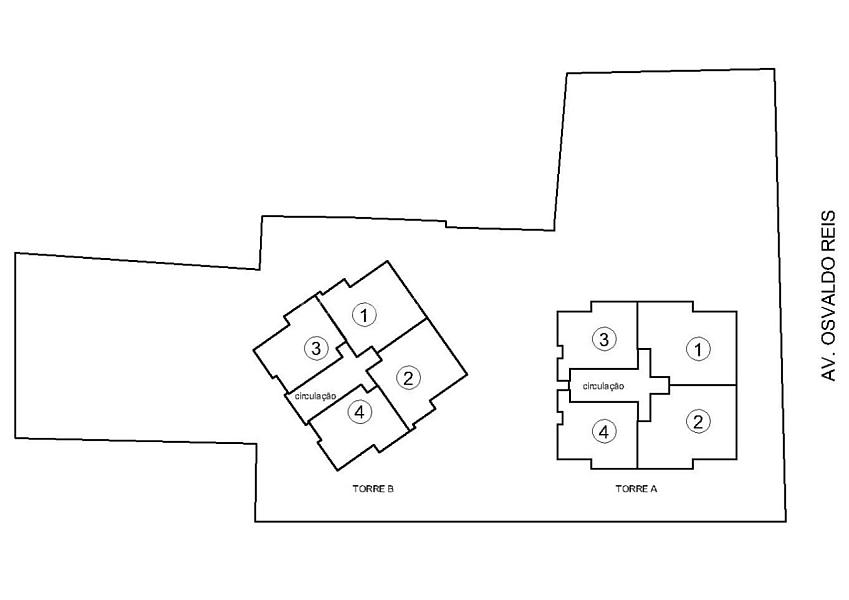 TORRE A – 1° PAVIMENTO TIPO DIFERENCIADO: