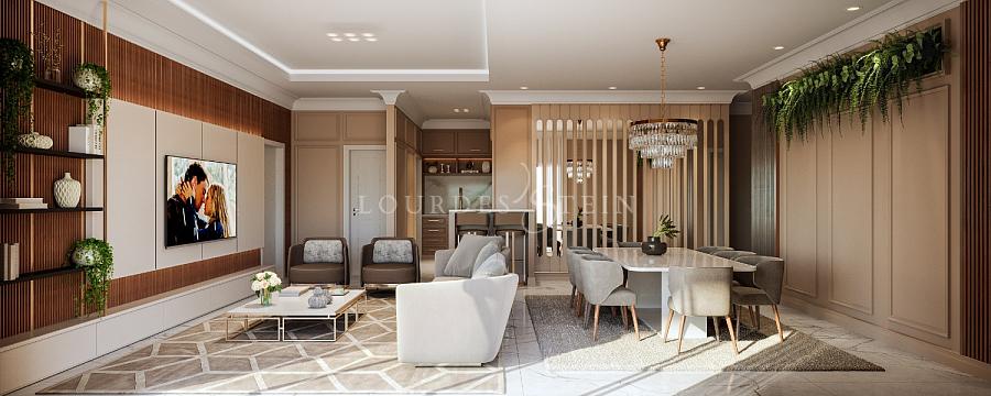 Este empreendimento espetacular oferece apartamentos de 116 metros quadrados, com uma distribuição inteligente de três suítes, lavabo, pontos USB, sala de estar com sala, cozinha, área de serviço, sacada e duas vagas de garagem.