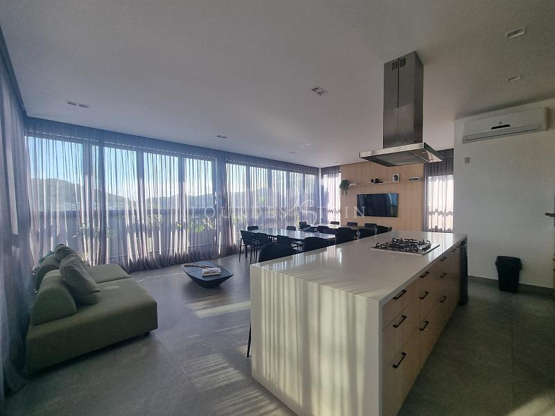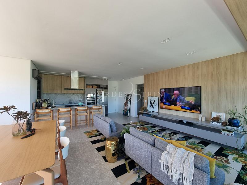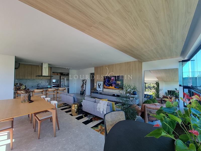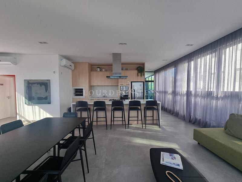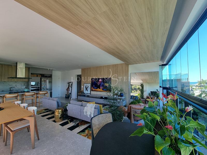 A unidade possui aproximadamente 136,86 m² de área privativa e foi desenhada para quem prioriza ambientes amplos, integração e funcionalidade. O living é generoso e integrado (estar/jantar/cozinha), criando um espaço fluido e elegante para o dia a dia e para receber. Na sacada, a churrasqueira a carvão adiciona um diferencial muito desejado na Brava — perfeita para encontros, refeições em família e momentos de lazer sem sair de casa. E aqui entra um ponto raríssimo: o terraço privativo, ampliando a experiência e trazendo aquela sensação de “casa suspensa”, com mais respiro, mais liberdade e mais possibilidades de uso.