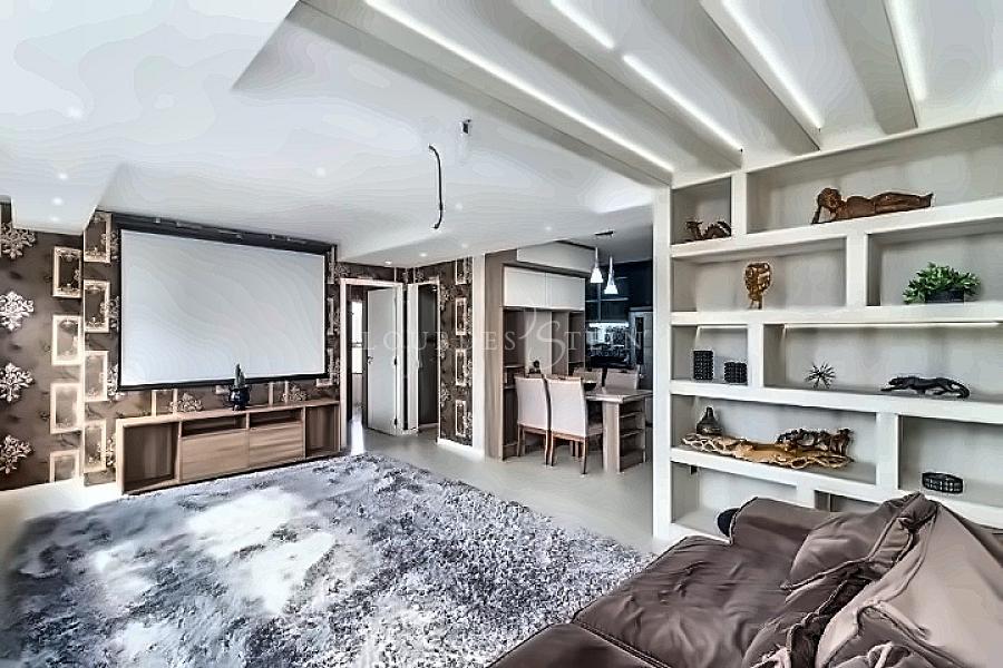 Destaques do interior: espelho de destaque no hall de entrada, rebaixamento em gesso e iluminação embutida; janelas com isolamento acústico; ar-condicionado instalado.