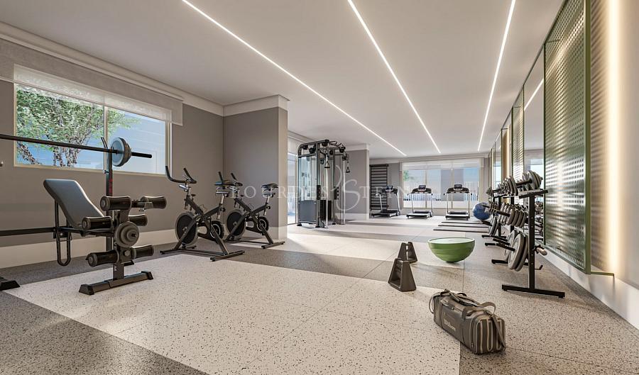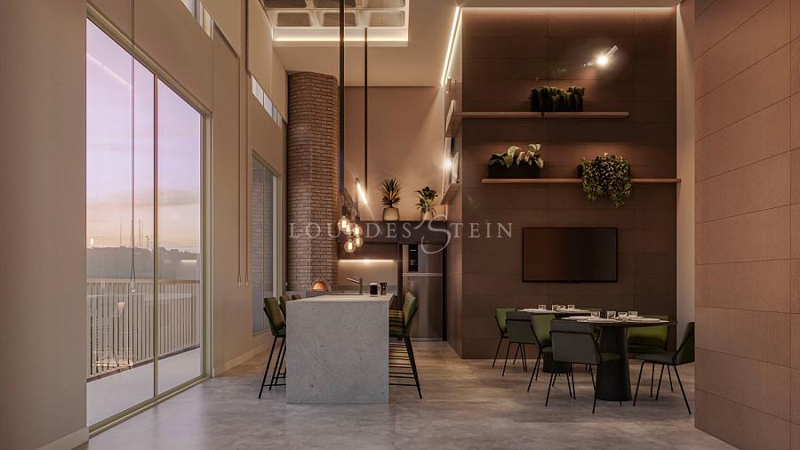 • Apartamentos Sofisticados: Opções de 2 suítes, 1 suíte + 1 dormitório ou Loft Duplex, todos com amplo living integrado, churrasqueira a carvão na sacada e fechadura eletrônica.