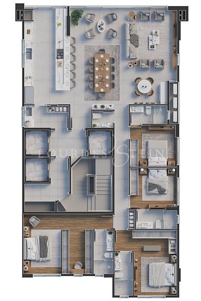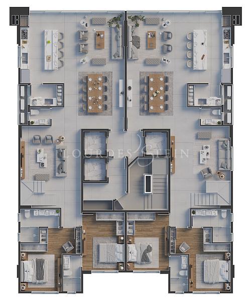 Distribuição: Composta por 4 suítes, lavabo, sala de estar, cozinha e lavanderia, cada canto foi projetado para oferecer funcionalidade e conforto.